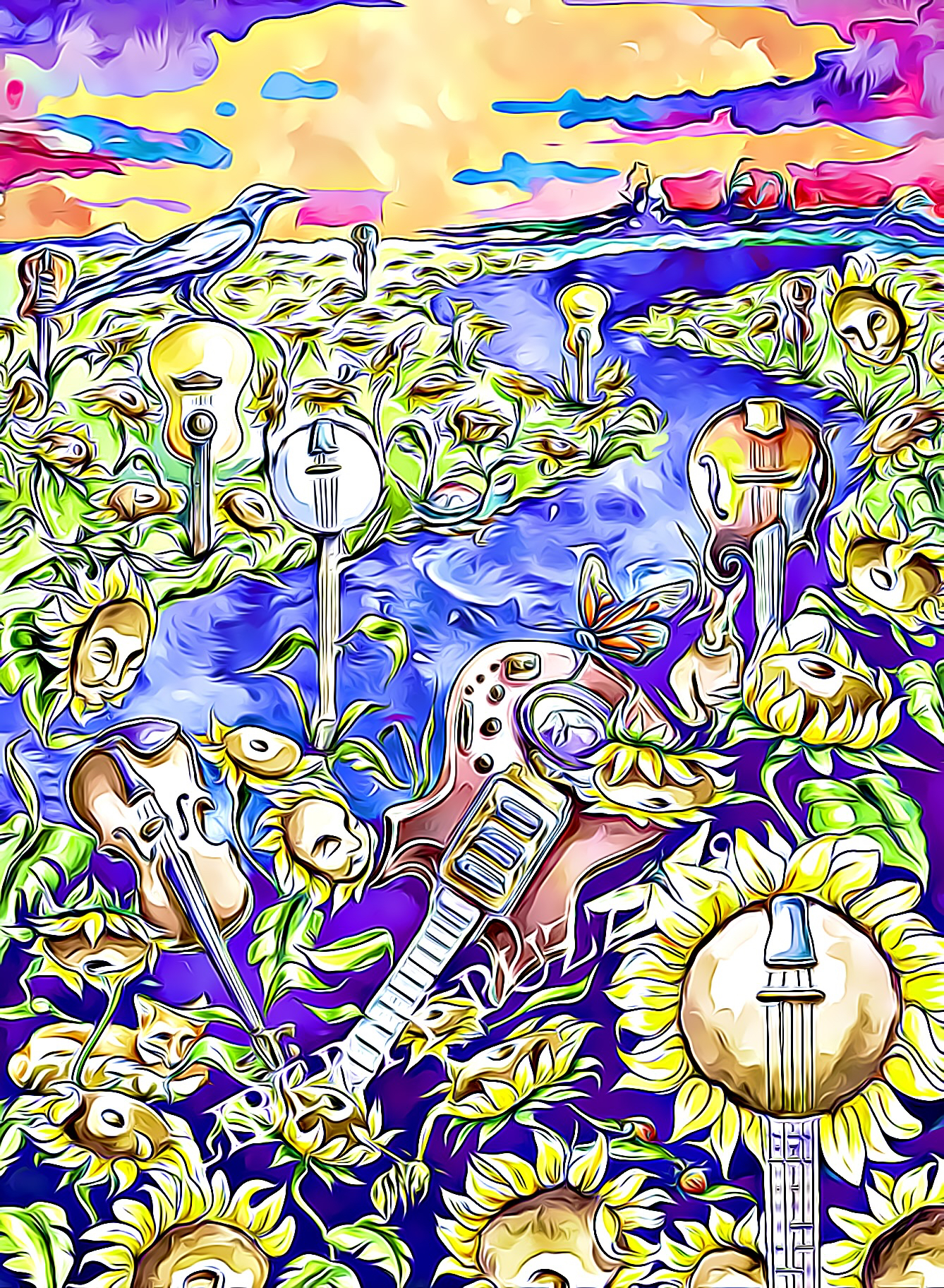 Comic book colors on a violin river,